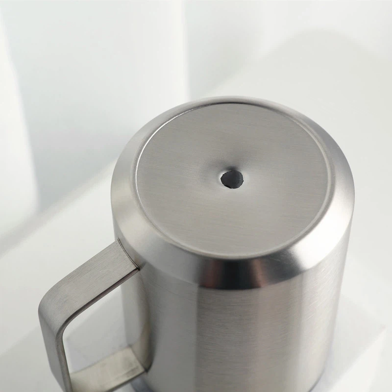 Предимства на 360 ml стоманени чаши с дръжка: Издръжливи и дълготрайни: 360 ml стоманени чаши с дръжки са изработени от висококачествена неръждаема стомана, която е известна със своята издръжливост и дълготрайност. За разлика от пластмасовите или стъклените чаши, стоманените чаши е по-малко вероятно да се счупят или счупят, ако бъдат изпуснати, което ги прави идеални за пътуване. Екологични: Използването на 360 ml стоманена чаша с дръжка може да помогне за намаляване на количеството отпадъци, произведени от чашите за еднократна употреба. Като използвате чаша за многократна употреба, можете да намалите въглеродния си отпечатък и да окажете положително въздействие върху околната среда. Поддържа кафето ви горещо или студено: Стоманена чаша с дръжка може да поддържа кафето ви горещо или студено с часове. Технологията за вакуумна изолация, използвана в тези чаши, помага да се поддържа температурата на вашата напитка, така че можете да й се наслаждавате със собствено темпо. Лесни за почистване: Стоманените чаши с дръжки са лесни за почистване и поддръжка. Подходящи са за съдомиялна машина и могат да се почистват и на ръка. Това ги прави удобен избор за тези, които винаги са в движение. Видове стоманени чаши с дръжка: Стоманени чаши с една стена:
